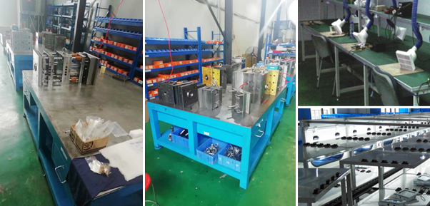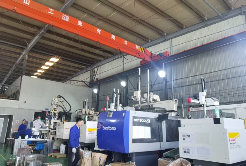 注塑車間(注塑機13臺) 公司擁有臺灣油壓機注塑機5臺,80T到150T,8臺發(fā)那科50T和100T的全新電動機。同時與鴻碩注塑是戰(zhàn)略合作伙伴。